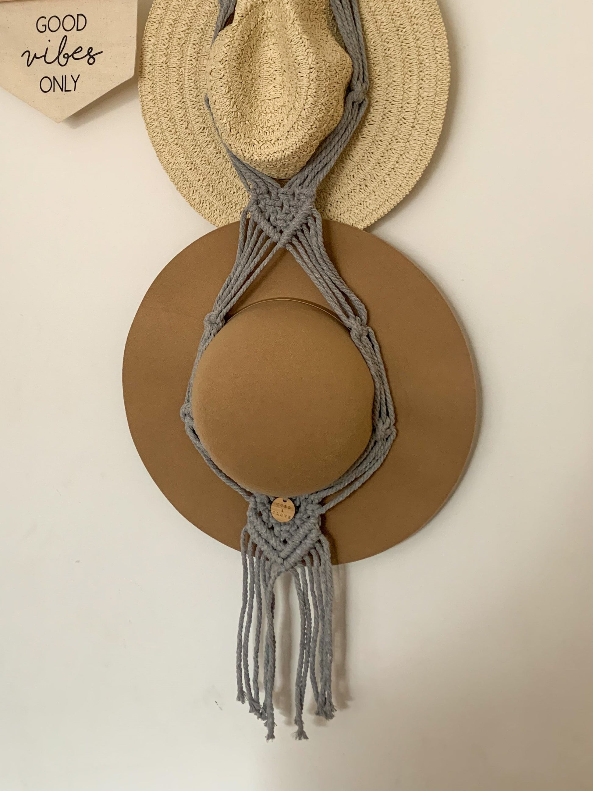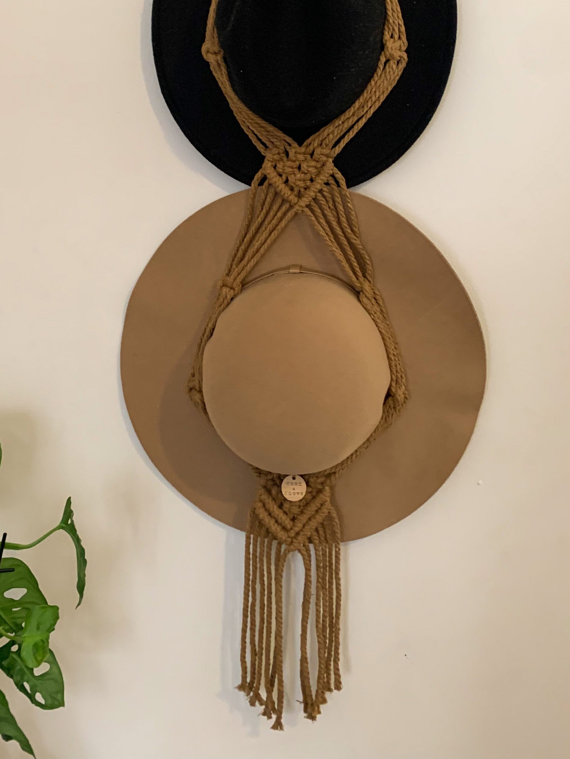 Juniper allows you to store 3 brimmed hats safely, in a beautiful piece on the wall.